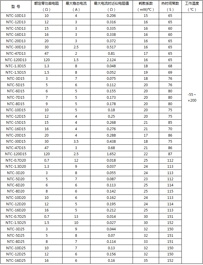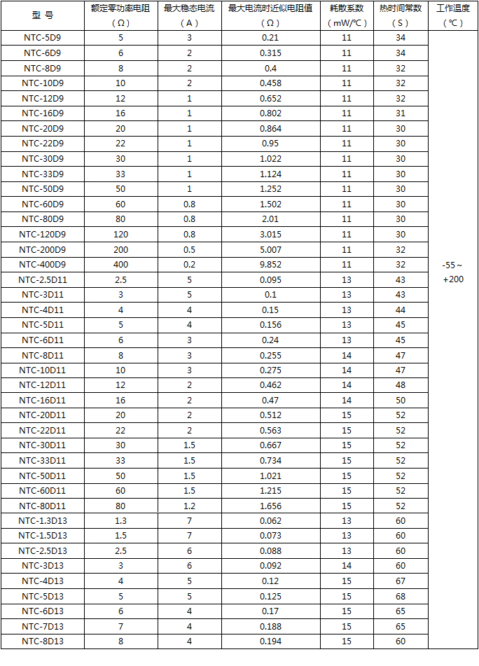 ◆產品介紹:為了避免電子電路中在開機的瞬間產生的浪涌電流,在電源電路中串接 一個功率型NTC熱敏電阻器,能有效地抑制開機時的浪涌電流,并且在 完成抑制浪涌電流作用以后,由于通過其電流的持續作用,功率型NTC 熱敏電阻器的電阻值將下降到非常小的 程度,它消耗的功率可以忽略不計,不會對正常的工作電流造成影響,所以,在電源回路中使用功率型NTC熱敏電阻器,是抑制開機時的浪涌,以保證電子設備免遭破壞的最為簡便而有效的措施。